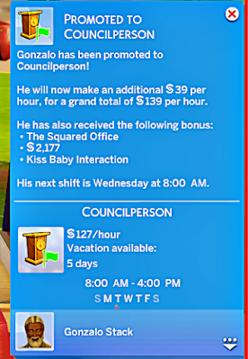 A promotion for Casey. These sims are slowly but surely making it up in their careers.